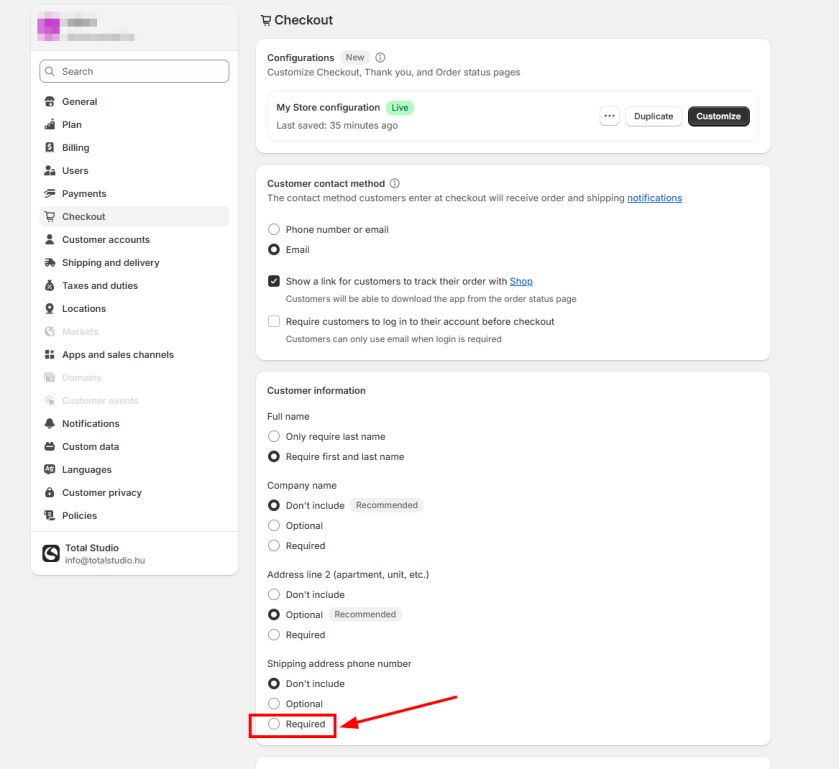 - lépés - engedléyezd a shopify-ban a telefonszám bekérését ezzel elkerülheted hogy a későbbiekben ilyen problémád legyen