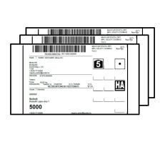 egy A4-es lapon négy darab A6-os címirat kerülhet elhelyezésre. (Ha csak egy A6-os címiratra kérjük ezt, akkor a címirat az A4-es lap bal felső részébe kerül) Dokumentum menedzsment igénybevétele esetén a 2. vonalkód a 2. címirathelyre kerül. A4-es öntapadós alapanyagra vagy általános rendeltetésű, fehér irodai papírra nyomtatható.